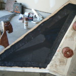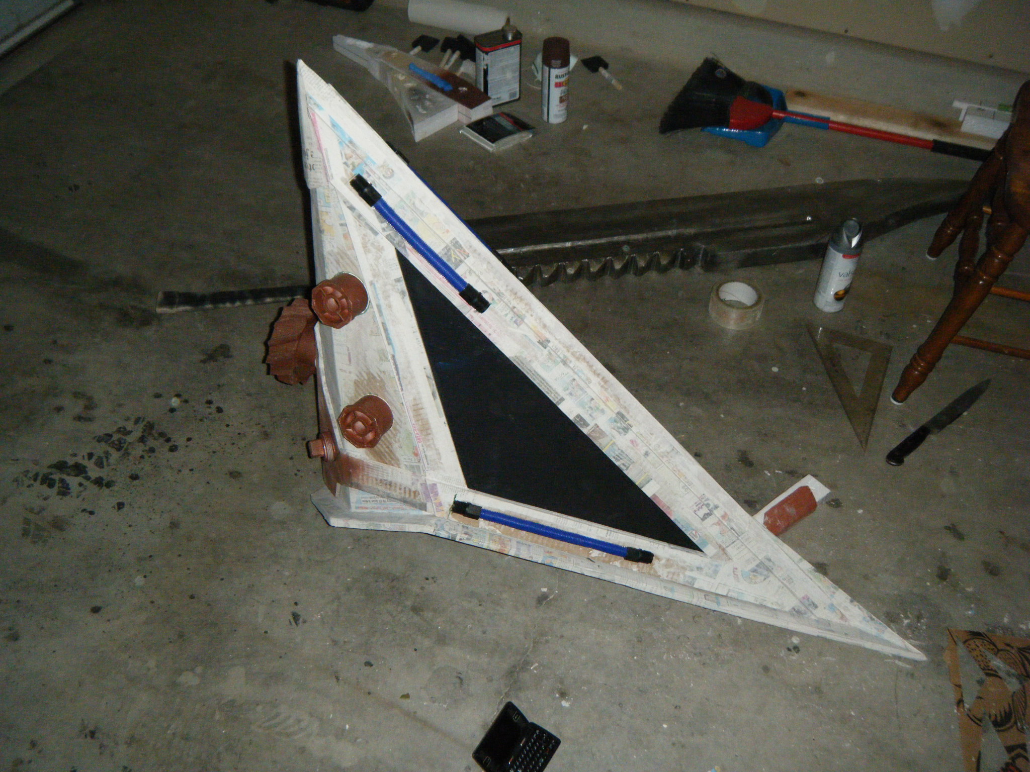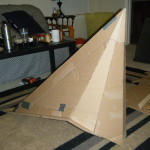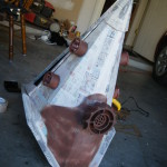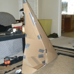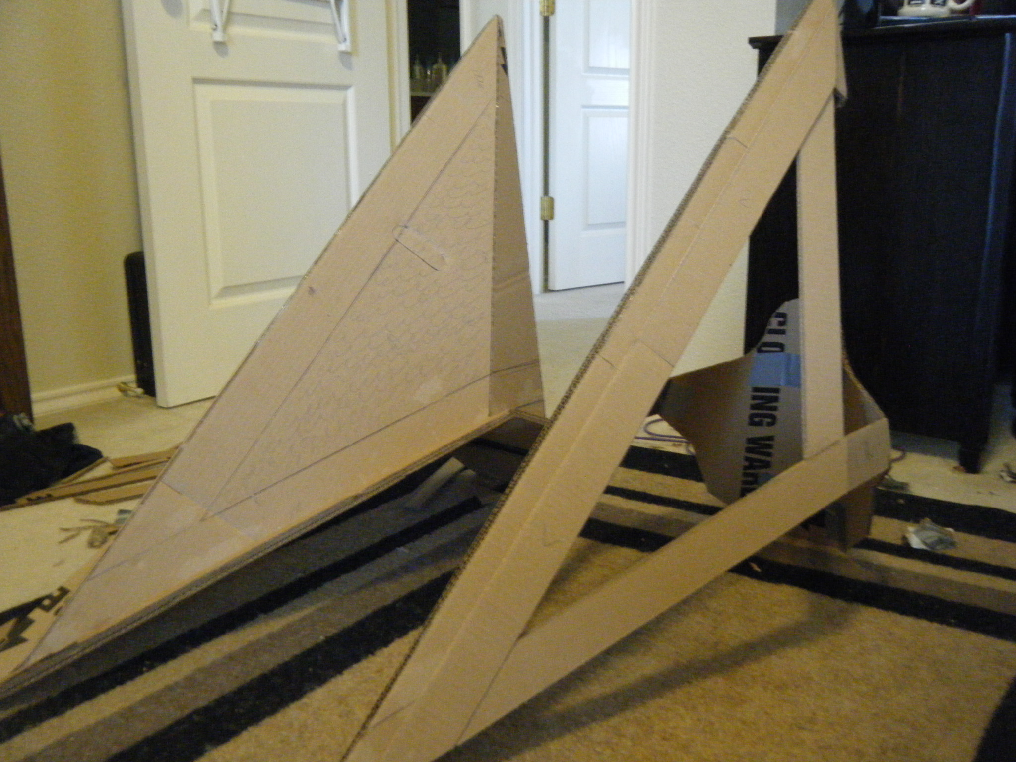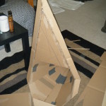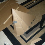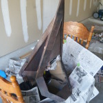 - Papier-mache’d to cover the corrugations of the cardboard.