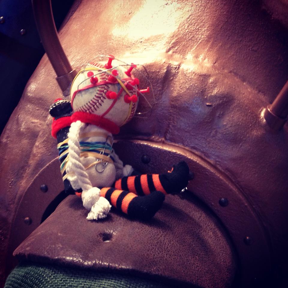 Last step for the face dome was to take a silicone mold of a bolt & wing nut, then cast resin copies of that, paint ’em steel, and glue ’em around the dome’s cardboard lip.