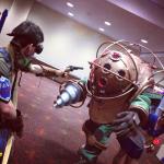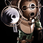 The ADAM extractor is my favourite piece, I think. I started with a gas pump nozzle that I picked up on eBay for about $30. I cut some pieces off of it, added a PVC tube at the bottom, built up the bottle apparatus, used a very large nail as the spike, painted this thing bronze. I found some “red ice gems” on amazon that reflect the red LED strip very nicely. The lights are powered by a 9-volt in handle extension at the bottom. I’m currently building a frame for this piece so it can be displayed proudly in the hallway.