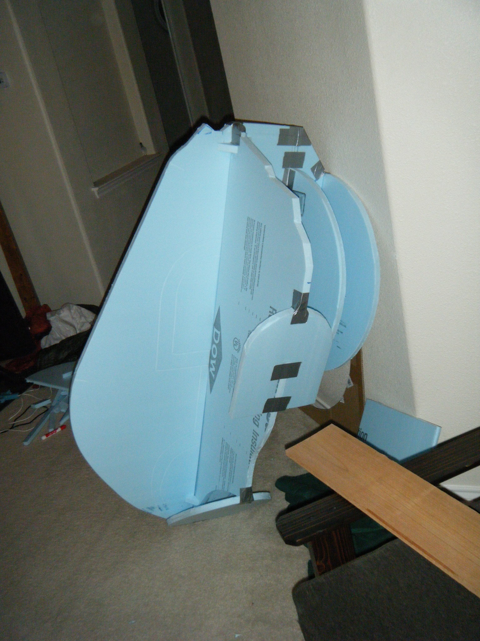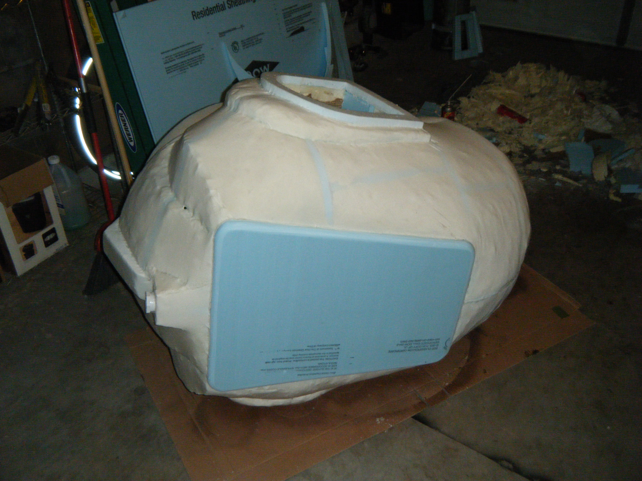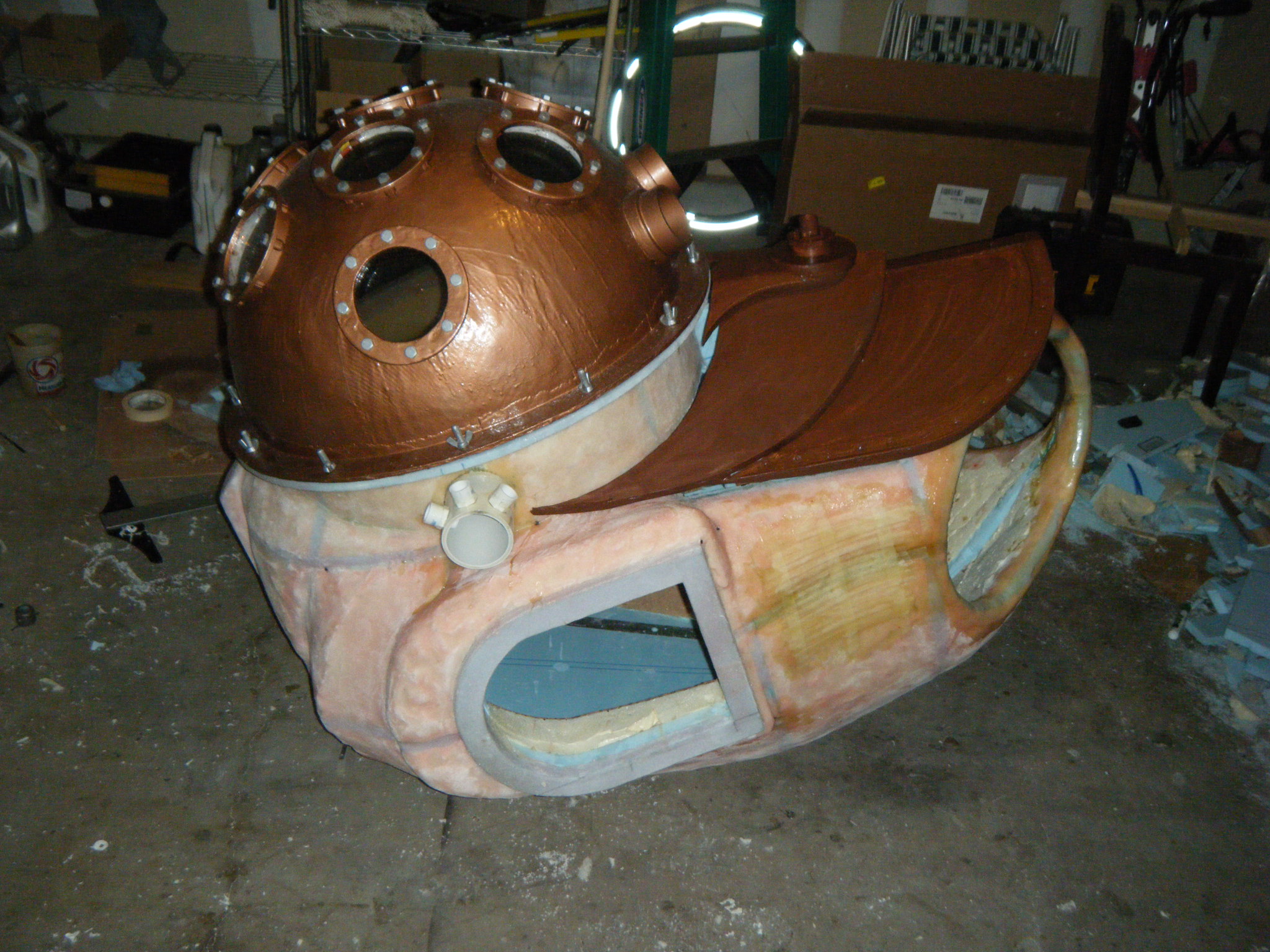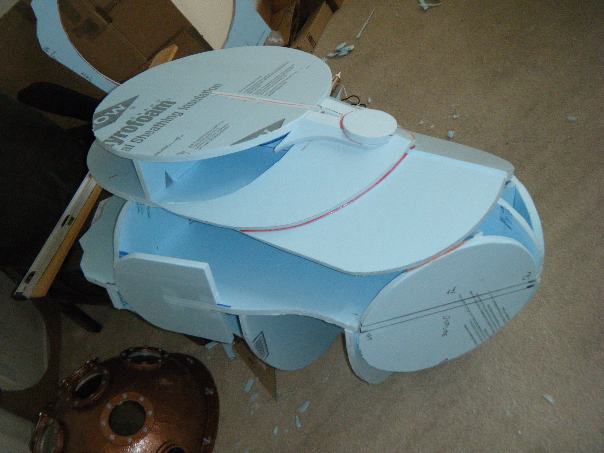 At this point I started working on everything in parallel. The arms, main body shell, chest plate, fake hand, auger, dive weights, etc. Really, everything except the legs. It was going to be awhile before I tried the costume on for size, and if at all possible, I wanted my own two feet on the ground. I don’t like how unwieldy costumes can be when you’re on stilts/platforms. So the legs waited, but everything else I started on immediately.