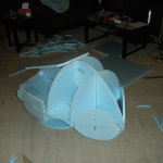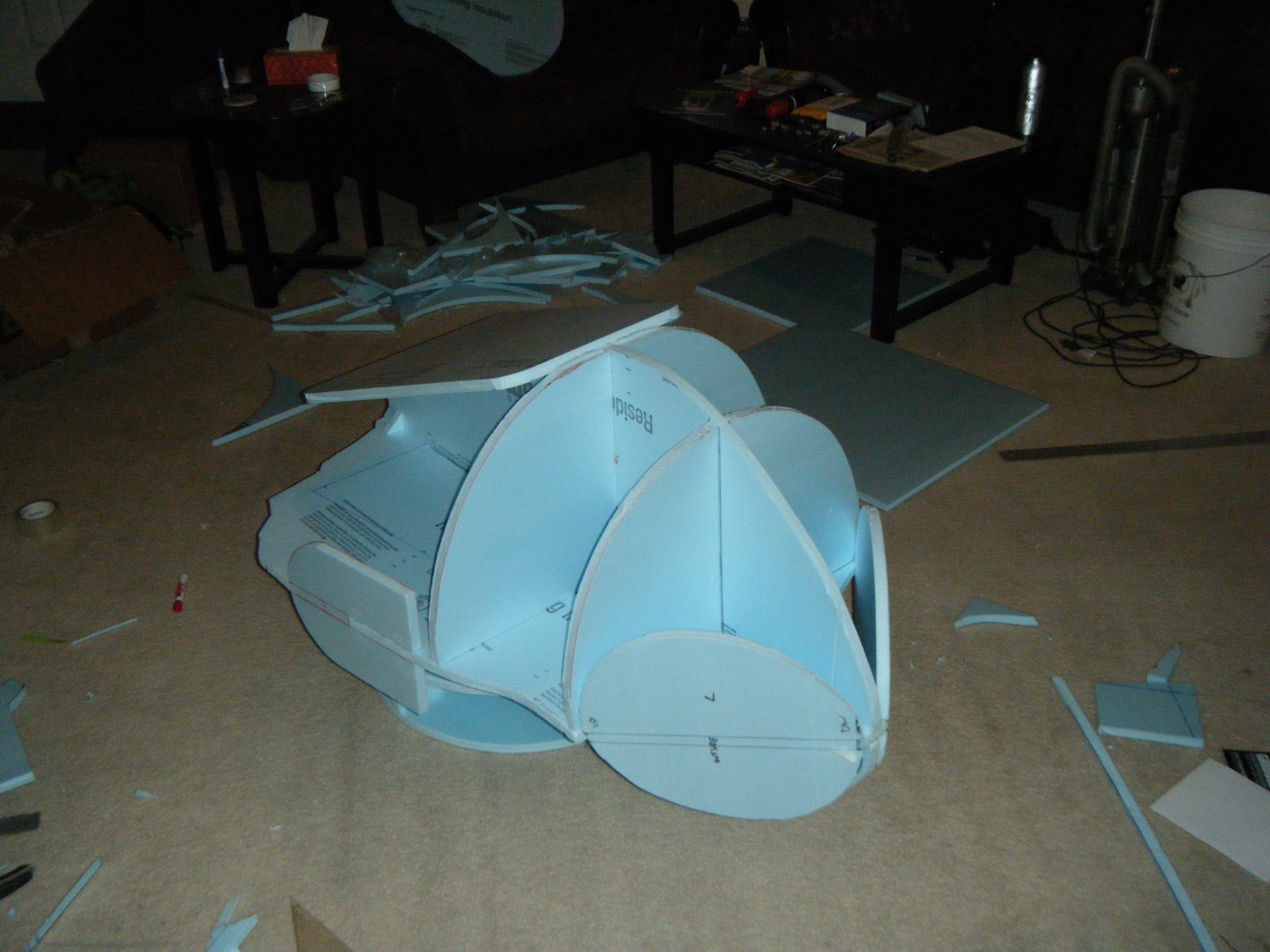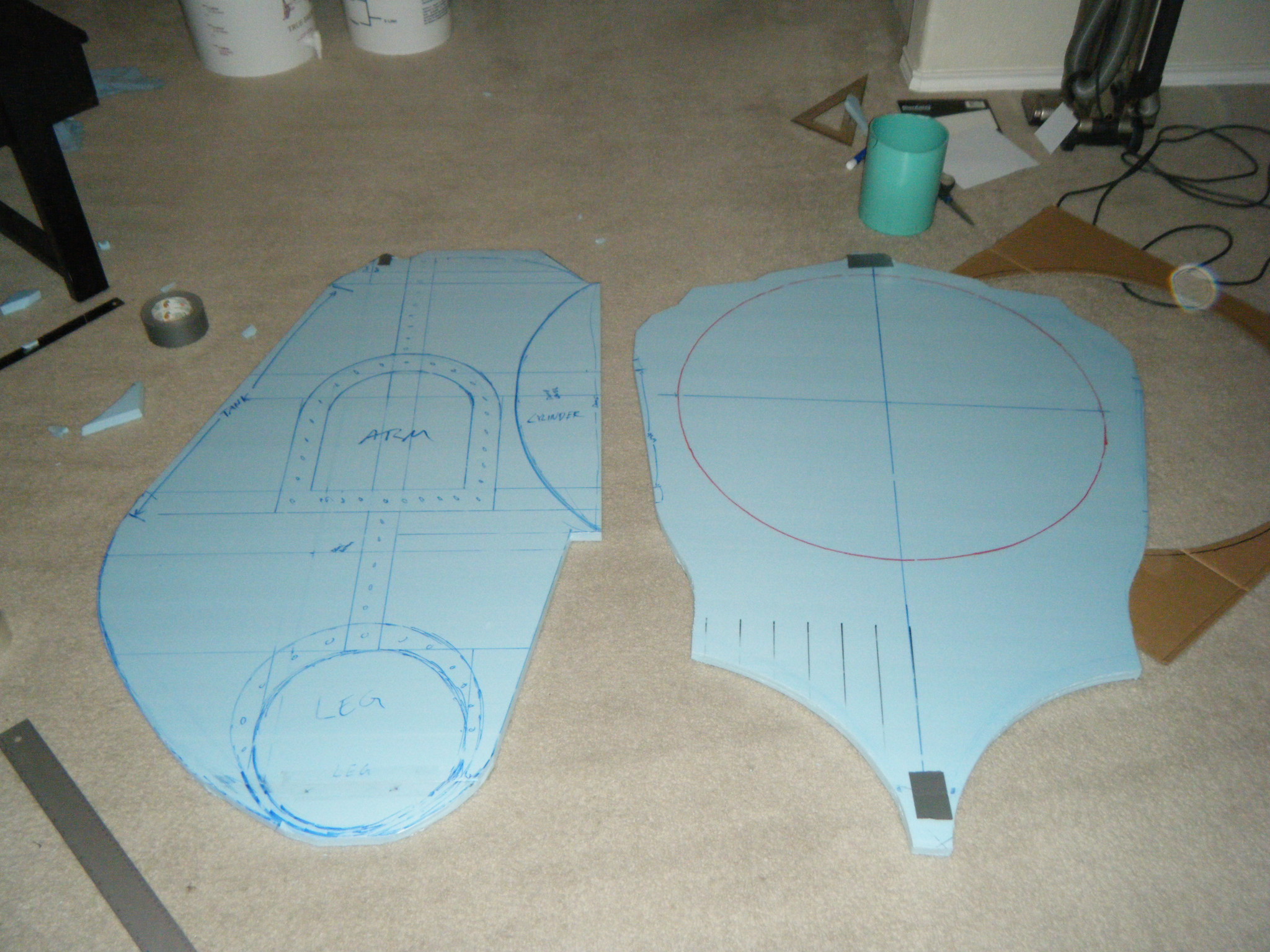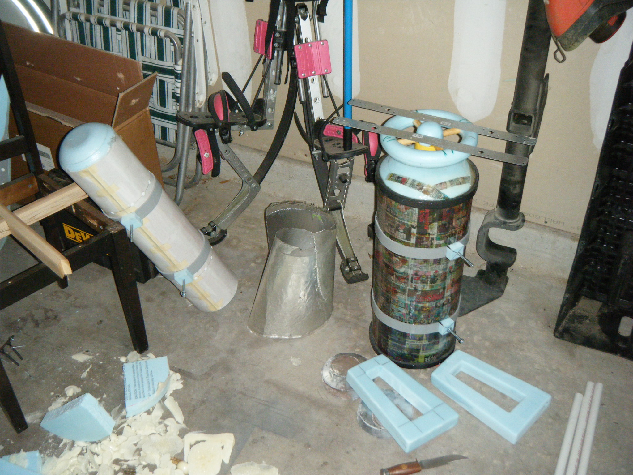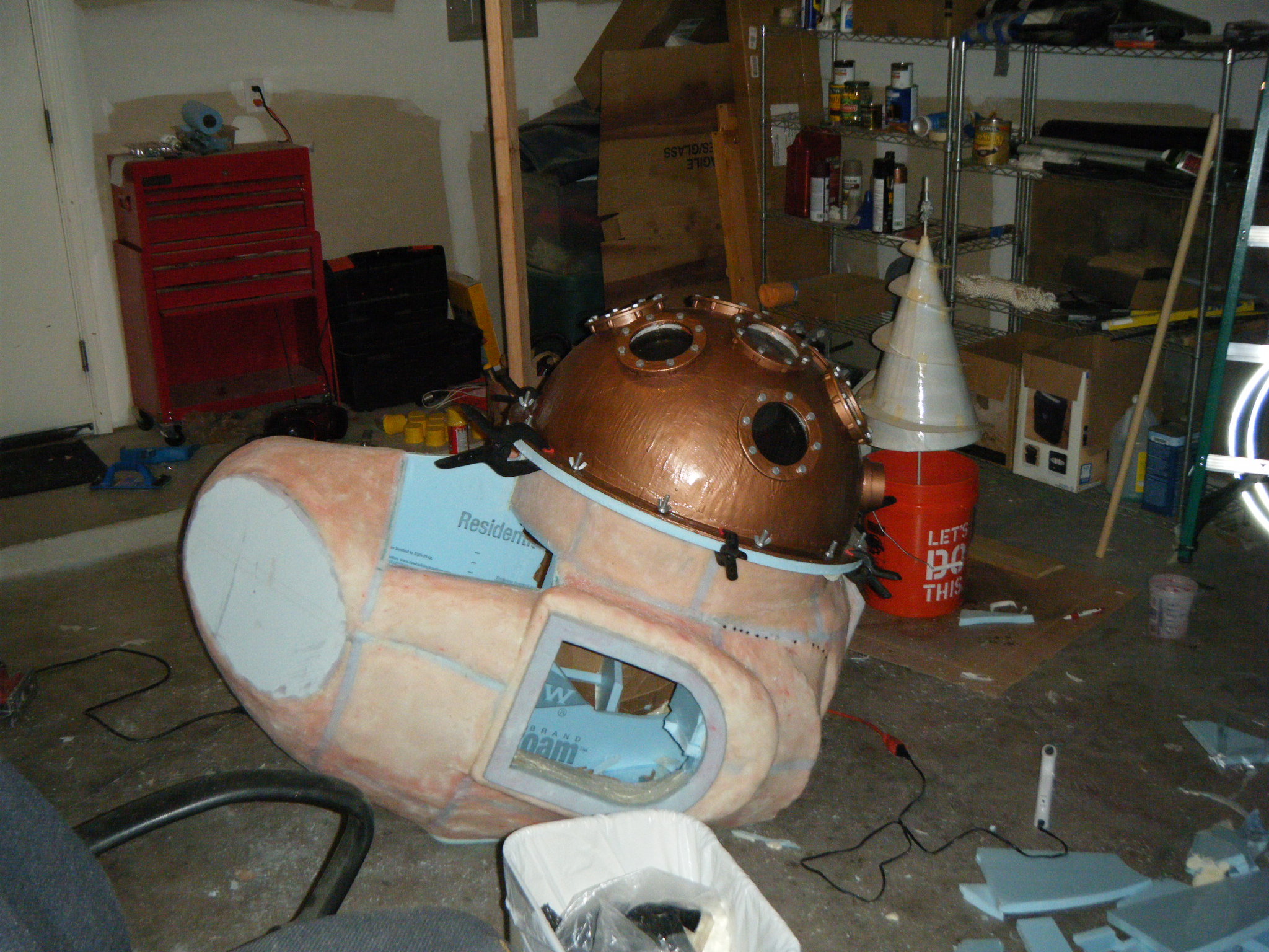 At this point I started working on everything in parallel. The arms, main body shell, chest plate, fake hand, auger, dive weights, etc. Really, everything except the legs. It was going to be awhile before I tried the costume on for size, and if at all possible, I wanted my own two feet on the ground. I don’t like how unwieldy costumes can be when you’re on stilts/platforms. So the legs waited, but everything else I started on immediately.