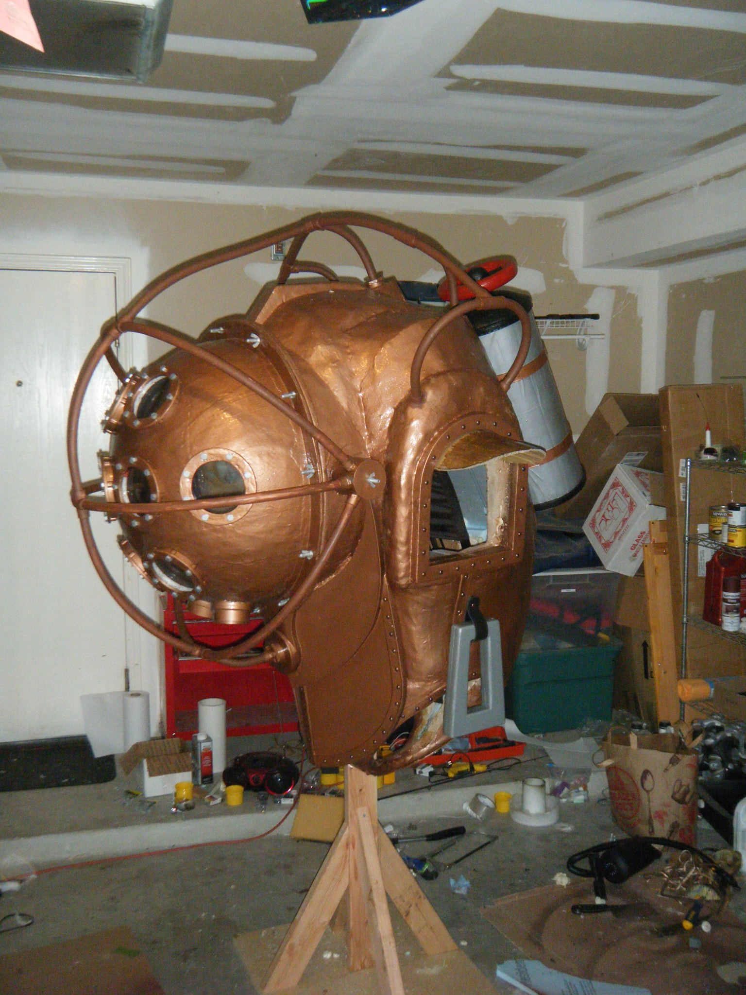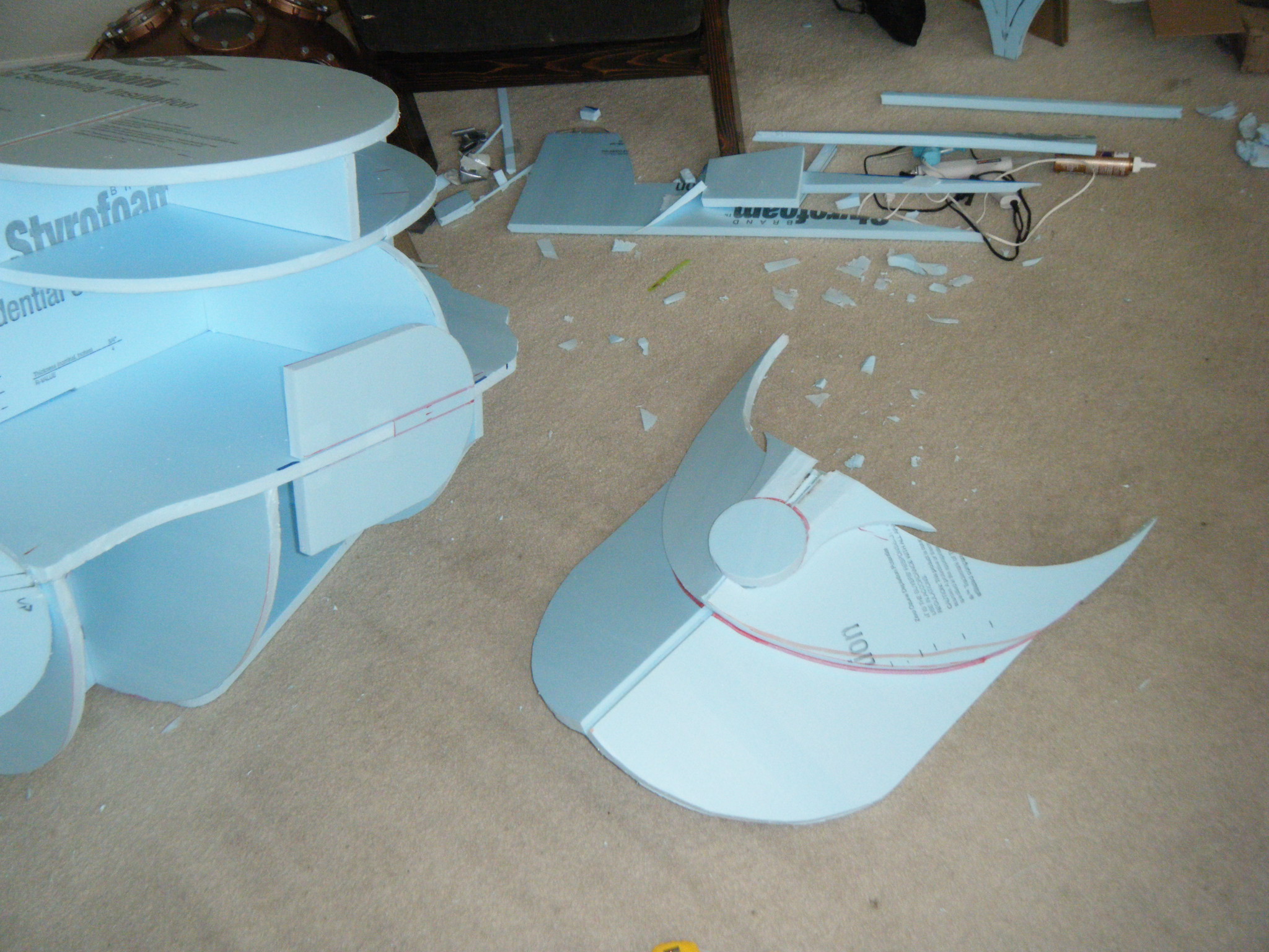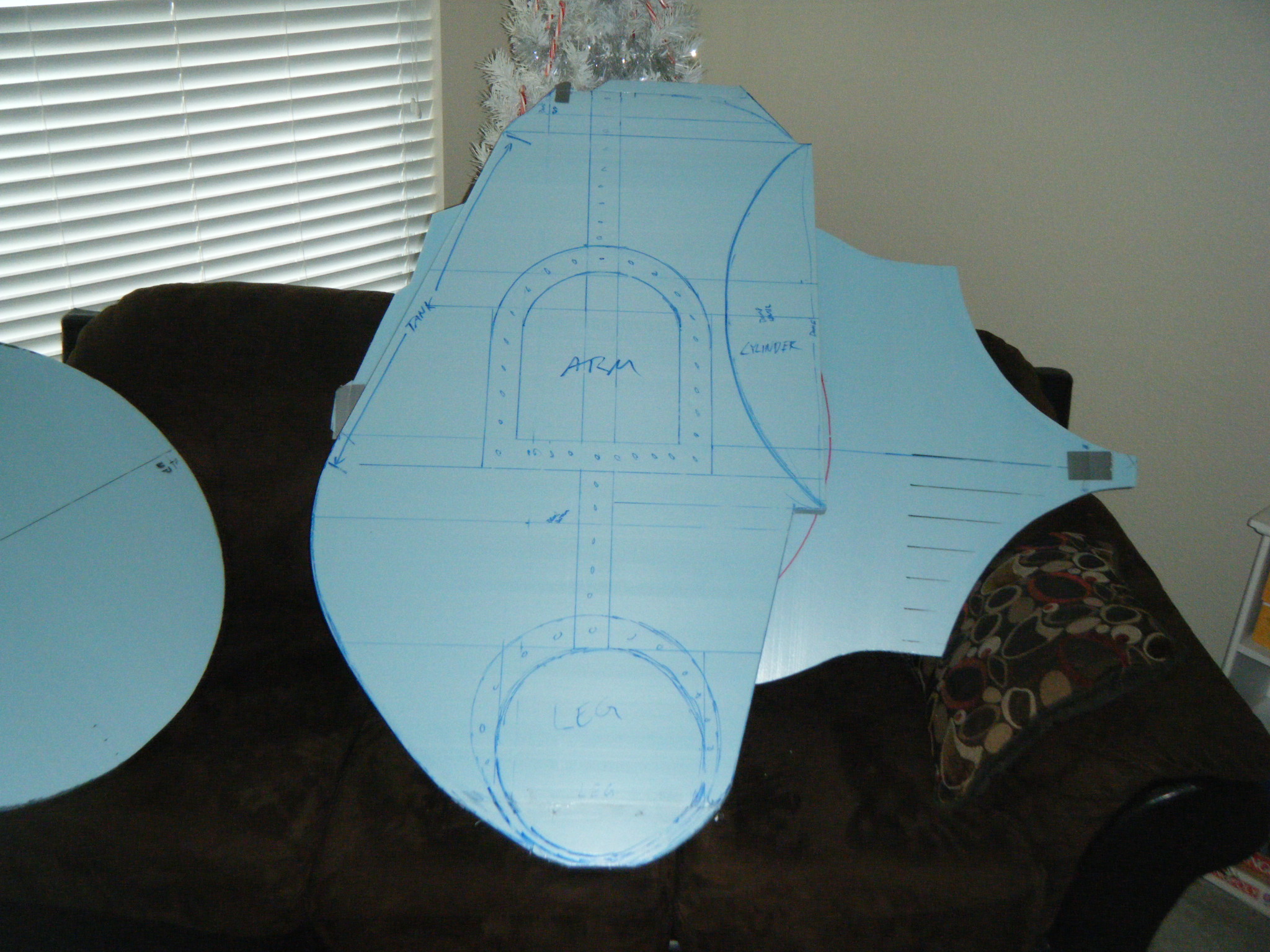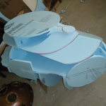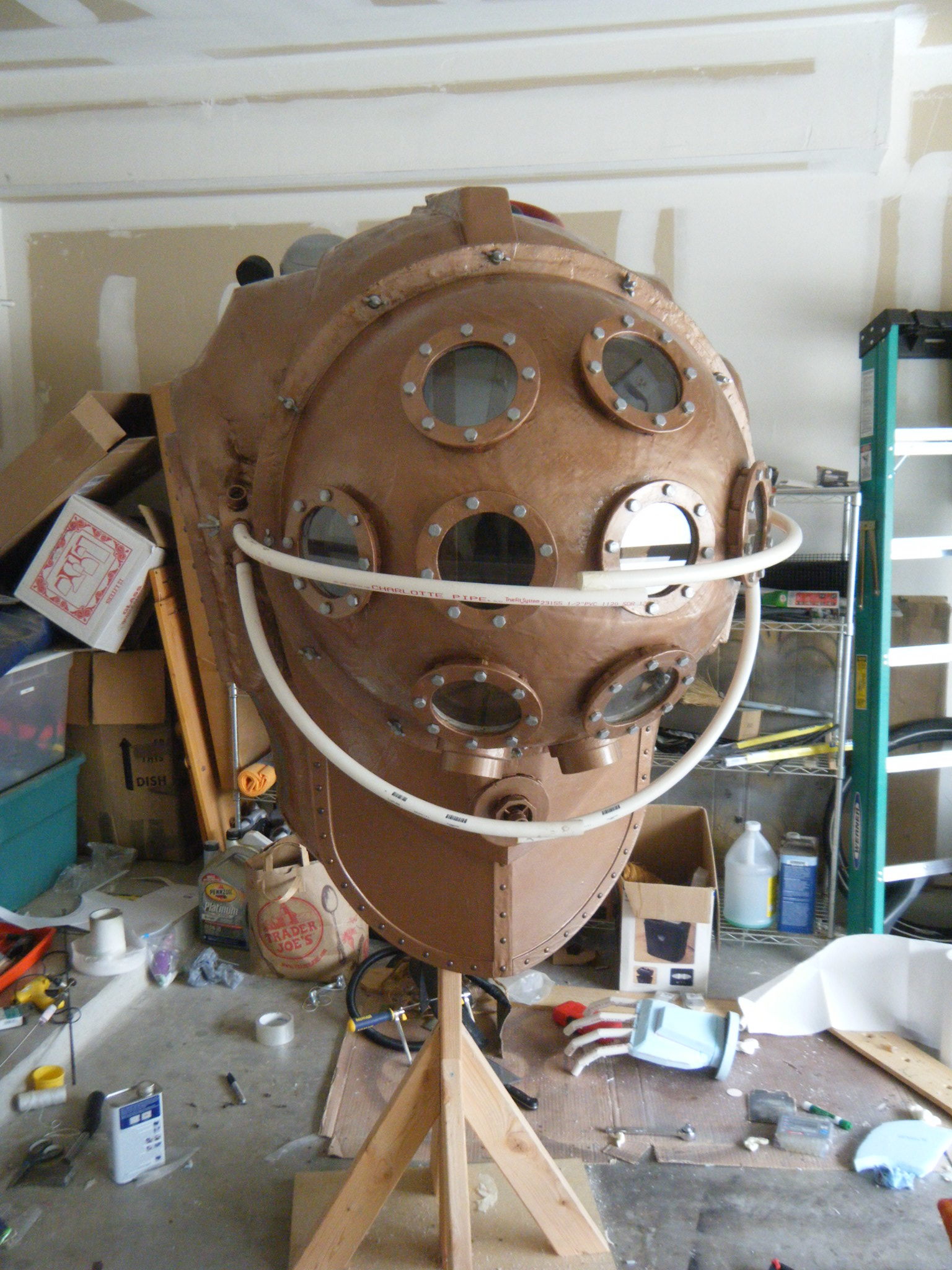 At this point I started working on everything in parallel. The arms, main body shell, chest plate, fake hand, auger, dive weights, etc. Really, everything except the legs. It was going to be awhile before I tried the costume on for size, and if at all possible, I wanted my own two feet on the ground. I don’t like how unwieldy costumes can be when you’re on stilts/platforms. So the legs waited, but everything else I started on immediately.