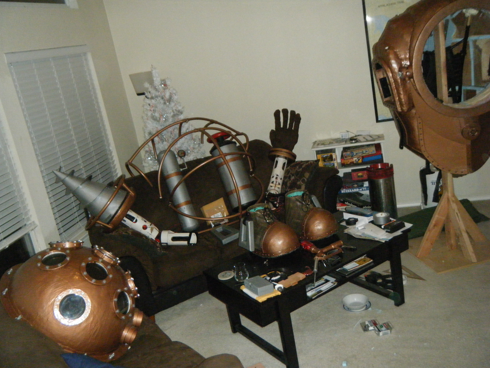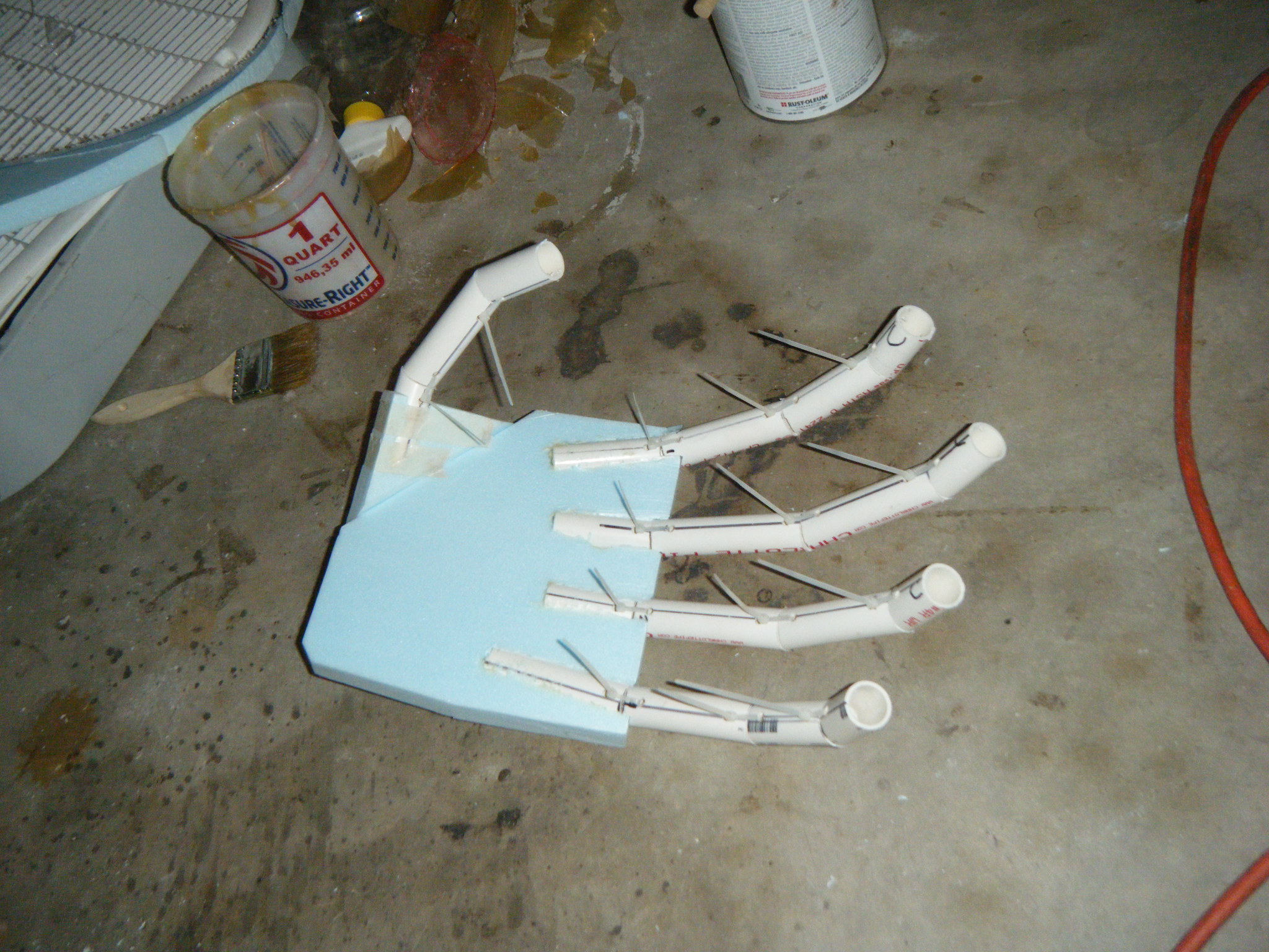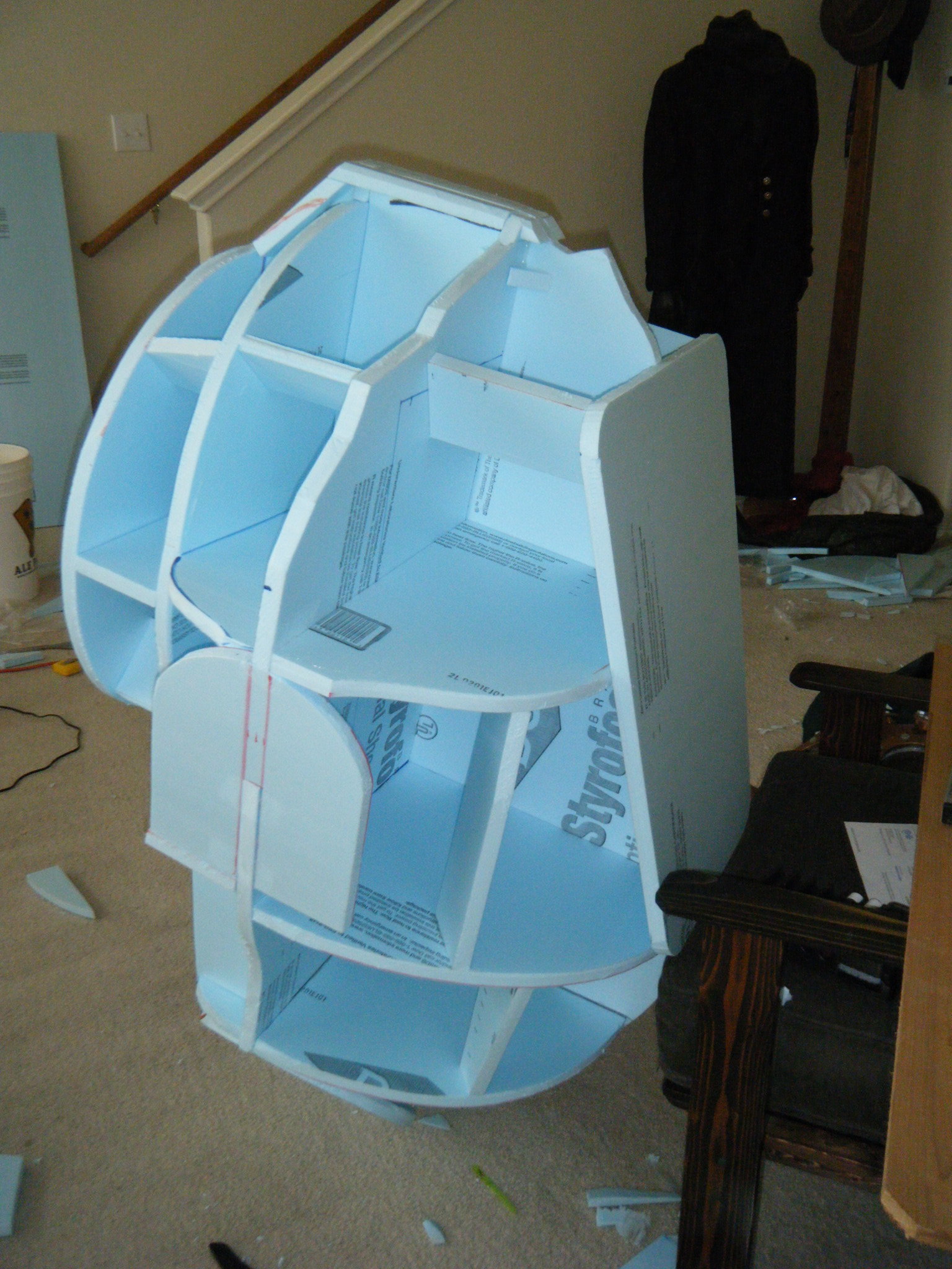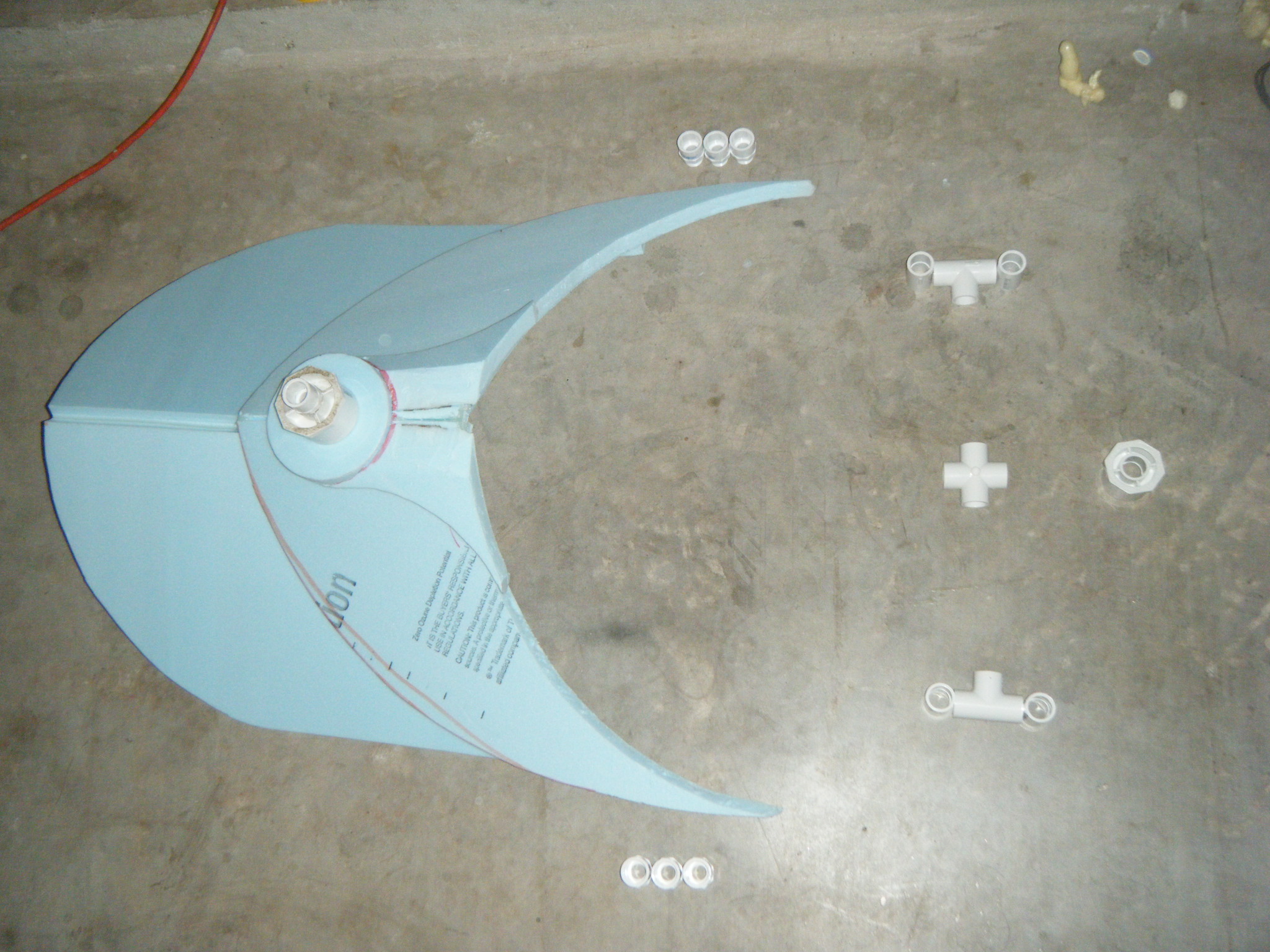 At this point I started working on everything in parallel. The arms, main body shell, chest plate, fake hand, auger, dive weights, etc. Really, everything except the legs. It was going to be awhile before I tried the costume on for size, and if at all possible, I wanted my own two feet on the ground. I don’t like how unwieldy costumes can be when you’re on stilts/platforms. So the legs waited, but everything else I started on immediately.